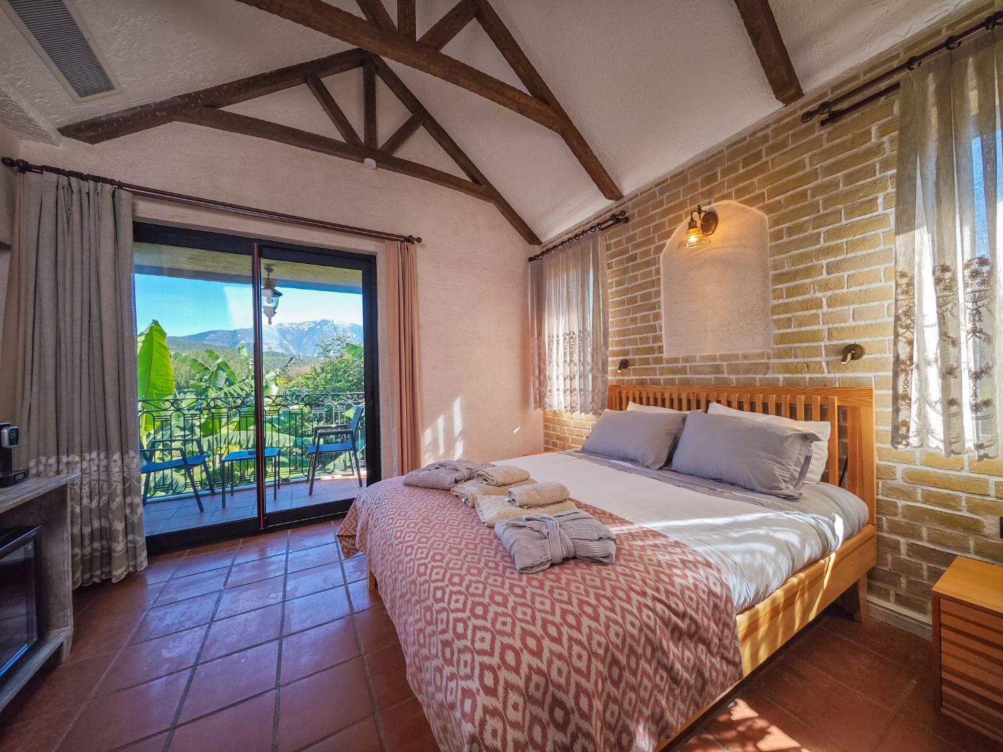 During your stay, the separate kitchen in the main building will be allocated for your use. If you wish, you can have the food and drinks you choose from the rich A La Carte menu of our restaurant located in the side garden served either in the fireplace lounge or by the pool in the accommodation section, for a fee. Breakfast is not included in the accommodation price.