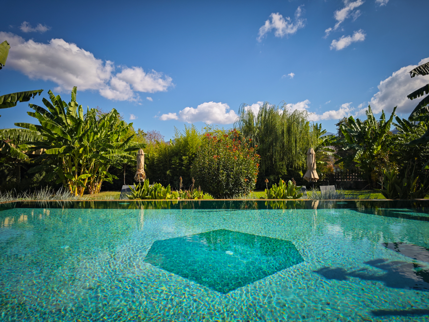 When you want to use the big jacuzzi in the garden, you should inform the facility staff to open it. The jacuzzi does not work by itself 24/7.
